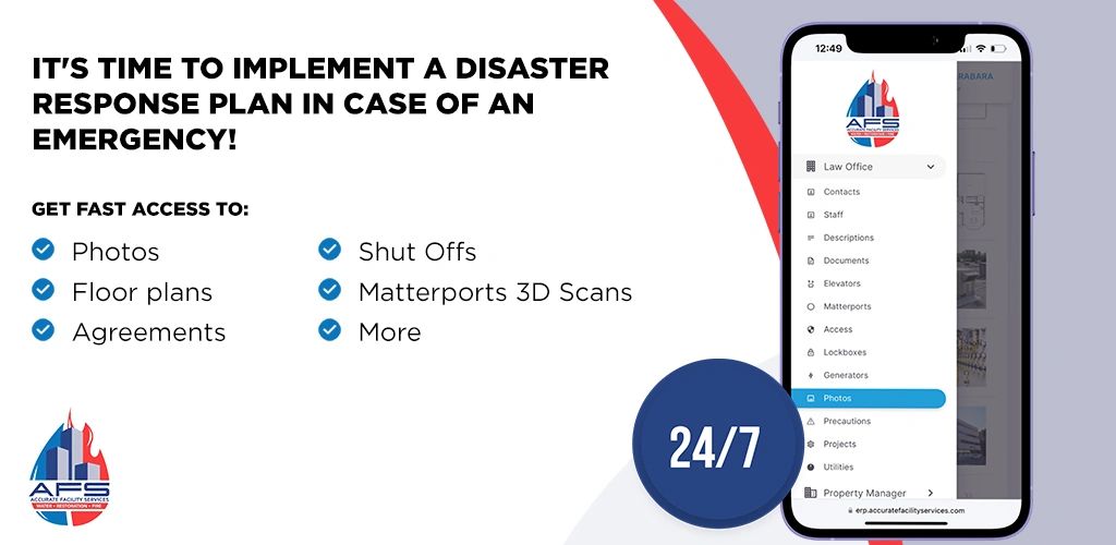 The best guarantee of a successful recovery when the worst happens is a comprehensive Emergency Response & Recovery Plan. From plant and facilities to key personnel notification, vendors, key municipal contacts for shutoffs, disconnects and services, all with a robust floor by floor Materport layout including total square feet involved. Contact AFS today to request a demo and discover how we can put the power of planning, response, and recovery in the palm of your hand.